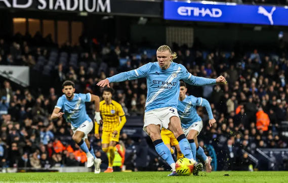 第78分鐘,曼城開出角球,哈蘭德前點頭球攻門,卡迪奧盧在門線上將球解圍,曼城再次錯失進球良機。第80分鐘,布萊頓后場傳球被謝爾基斷下,法國人虛晃后橫傳,哈蘭德在點球點附近無人防守時射門,但是球被費布魯亨撲住。一分鐘后,多庫直塞,哈蘭德左腳勁射擊中邊網(wǎng)。哈蘭德在這段時間里連續(xù)錯失了幾次絕佳的進球機會,讓曼城的球迷們扼腕嘆息。