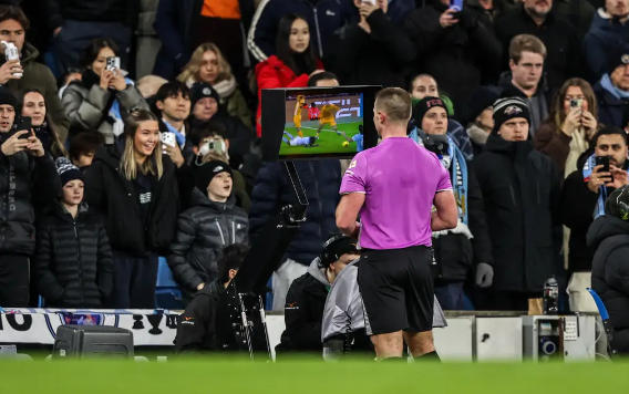 比賽的轉折點出現(xiàn)在第41分鐘,多庫在左路禁區(qū)內(nèi)突入內(nèi)切的時候,被迭戈 - 戈麥斯絆倒。主裁判在VAR的介入下,果斷判罰點球。哈蘭德站在點球點前,眼神堅定,他助跑、射門,一蹴而就,曼城終于打破了場上的僵局,1 - 0領先。這個進球讓曼城的球迷們歡呼雀躍,他們仿佛看到了勝利的曙光。