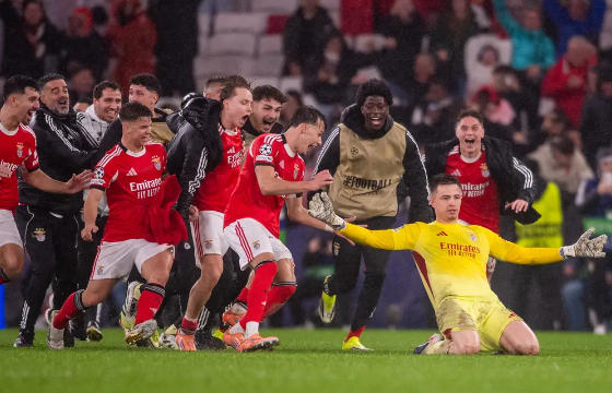 就在所有人都以為比賽將以皇馬2 - 3失利告終的時候,奇跡發生了。讀秒階段,奧爾斯內斯開出任意球,門將特魯賓竟然頭槌破門,本菲卡4 - 2鎖定勝局。這一進球讓本菲卡的球員和球迷們陷入了瘋狂的慶祝之中,而皇馬的球員們則一臉沮喪,難以接受這樣的結果。